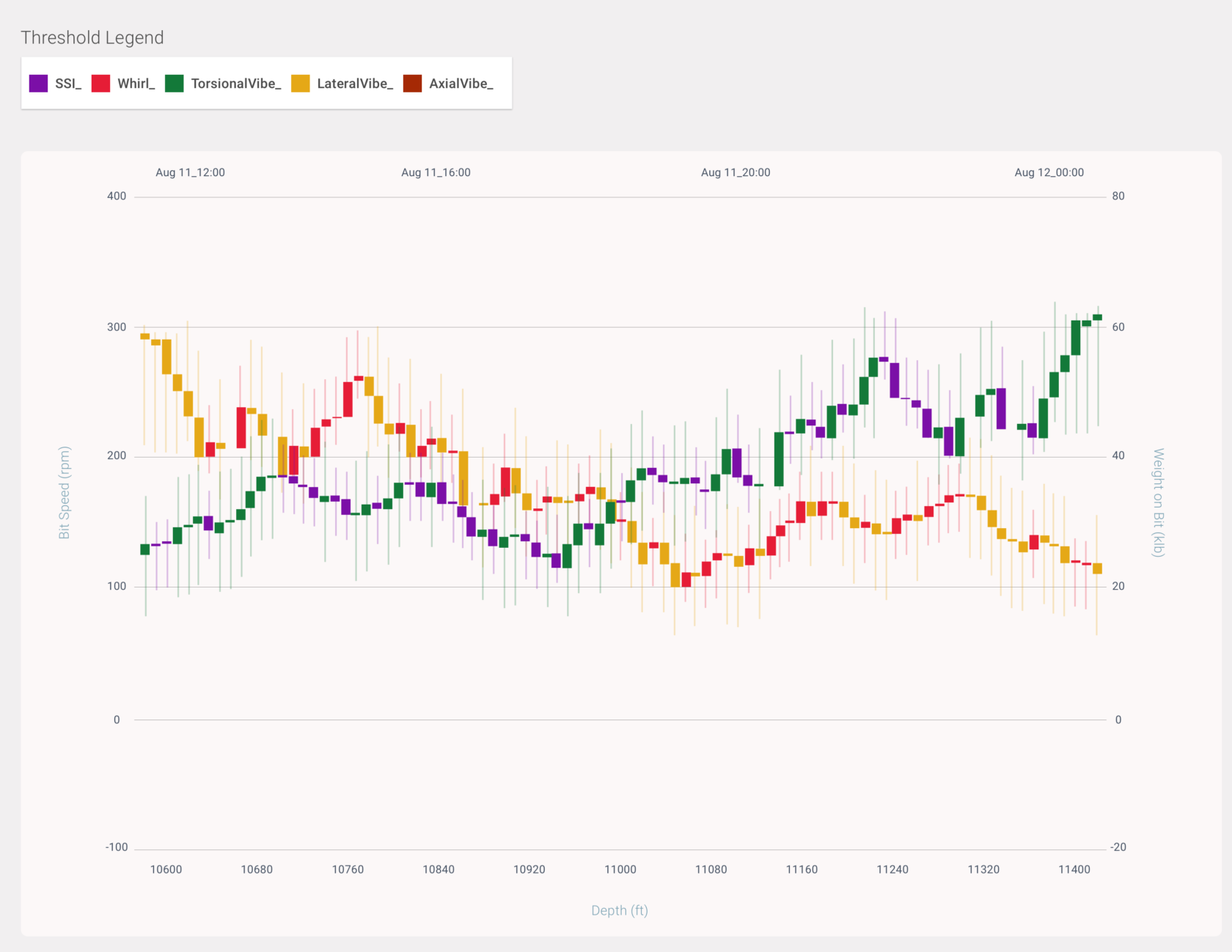 I had the idea to use this candlestick design (borrowed from my experience in cryptocurrency design and FinTech) to show the fluctuations in drill intensity.